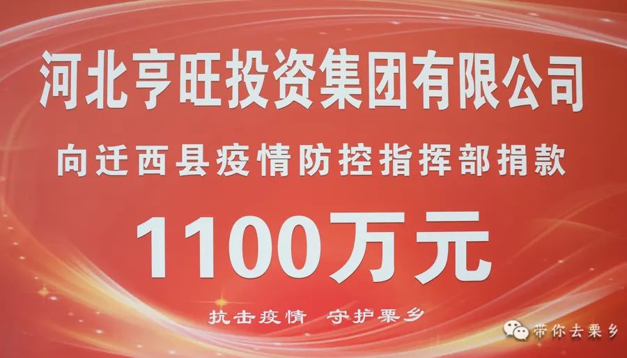 3月30日下午,河北亨旺投資集團(tuán)有限公司常務(wù)副總經(jīng)理付永躍代表集團(tuán)向遷西縣疫情防控指揮部捐款1100萬元,以實際行動踐行社會責(zé)任與擔(dān)當(dāng),與全縣人民一起同心戰(zhàn)疫、共克時艱,為堅決打贏疫情防控殲滅戰(zhàn)貢獻(xiàn)力量。縣委書記蔡宗健,縣委常委、統(tǒng)戰(zhàn)部長安莉平,縣政協(xié)副主席、工商聯(lián)主席姚玉新出席捐贈儀式。
