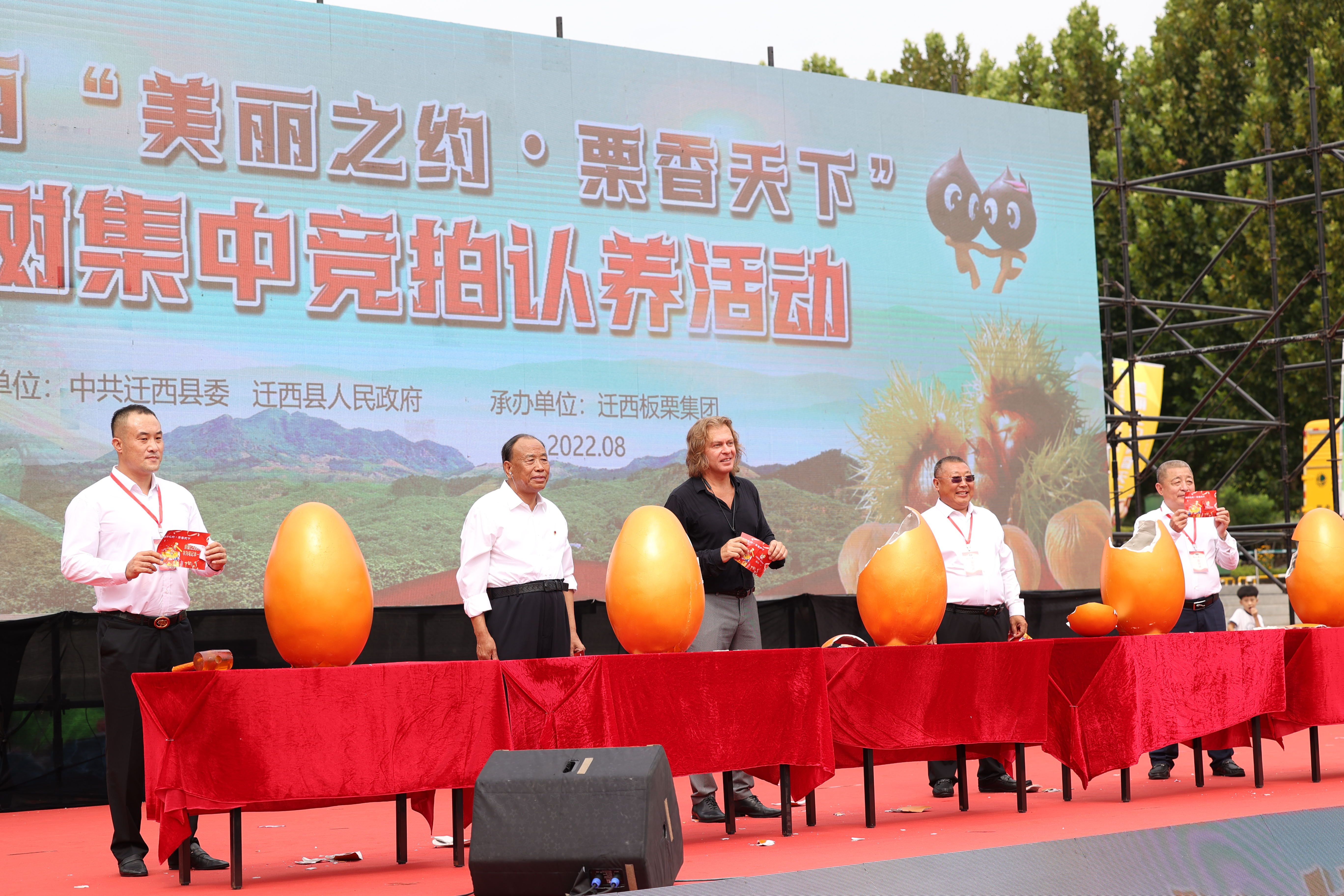 2022年8月21日上午,我縣在中國(guó)板栗博物館廣場(chǎng)開(kāi)展首屆中國(guó)遷西“美栗之約?香滿(mǎn)天下”板栗樹(shù)集中競(jìng)拍認(rèn)養(yǎng)活動(dòng)。中國(guó)工程院院士尹偉倫,北京農(nóng)學(xué)院植物科學(xué)技術(shù)學(xué)院院長(zhǎng)秦嶺,農(nóng)業(yè)農(nóng)村部中國(guó)綠色食品發(fā)展中心主任張華榮,河北省林草局副局長(zhǎng)王宇等各級(jí)領(lǐng)導(dǎo)和來(lái)自日本、意大利、俄羅斯、烏克蘭等國(guó)家的外國(guó)友人、媒體記者出席活動(dòng)。中國(guó)食品土畜進(jìn)出口商會(huì)板栗分會(huì)秘書(shū)長(zhǎng)孫宇,唐山市政協(xié)副主席董學(xué)忠,遷西縣委書(shū)記蔡宗健分別在認(rèn)養(yǎng)活動(dòng)上致辭。遷西縣四大班子領(lǐng)導(dǎo)出席活動(dòng)。