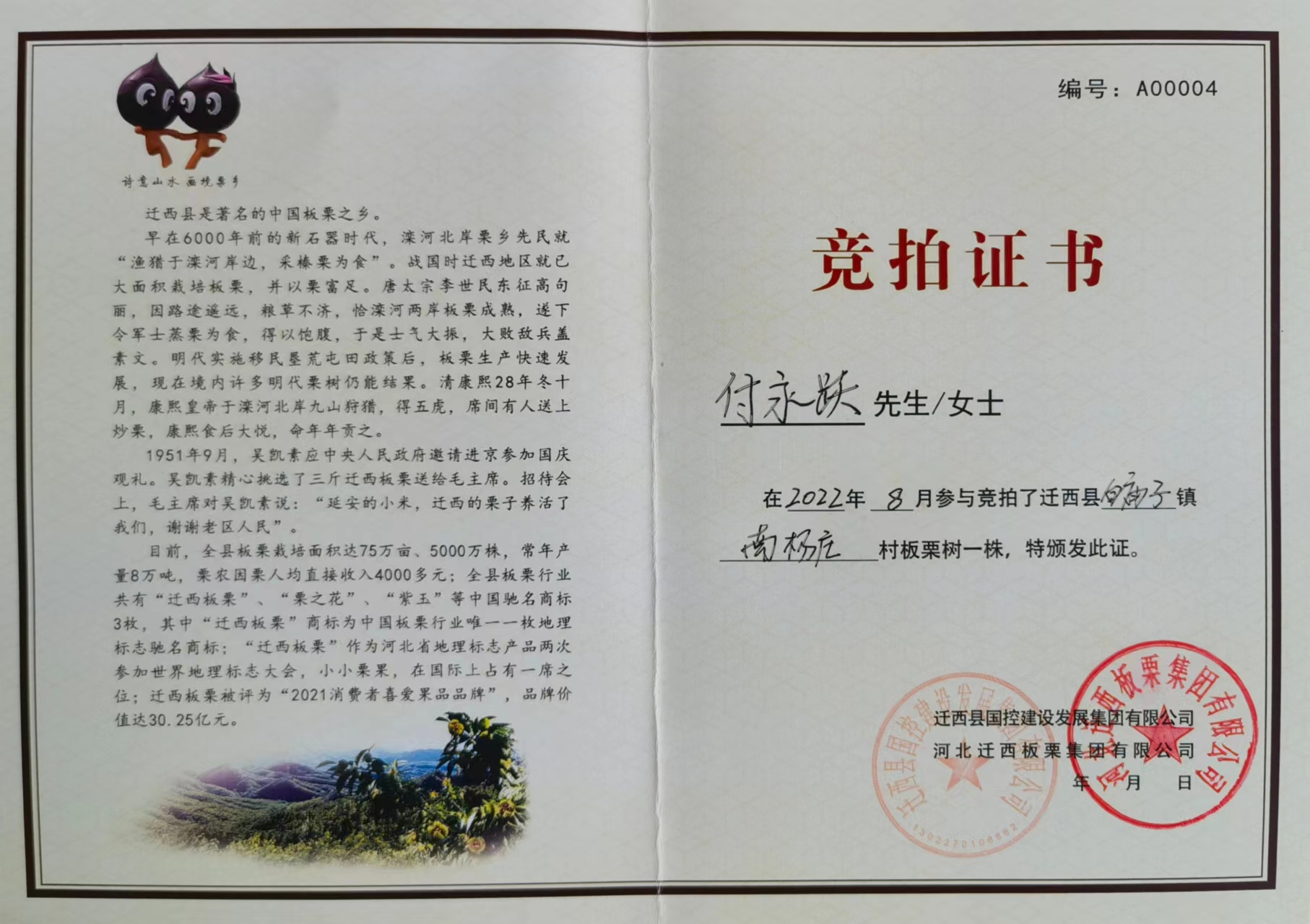 河北亨旺投資集團(tuán)榮獲500年以上板栗古樹(shù)認(rèn)養(yǎng)權(quán)